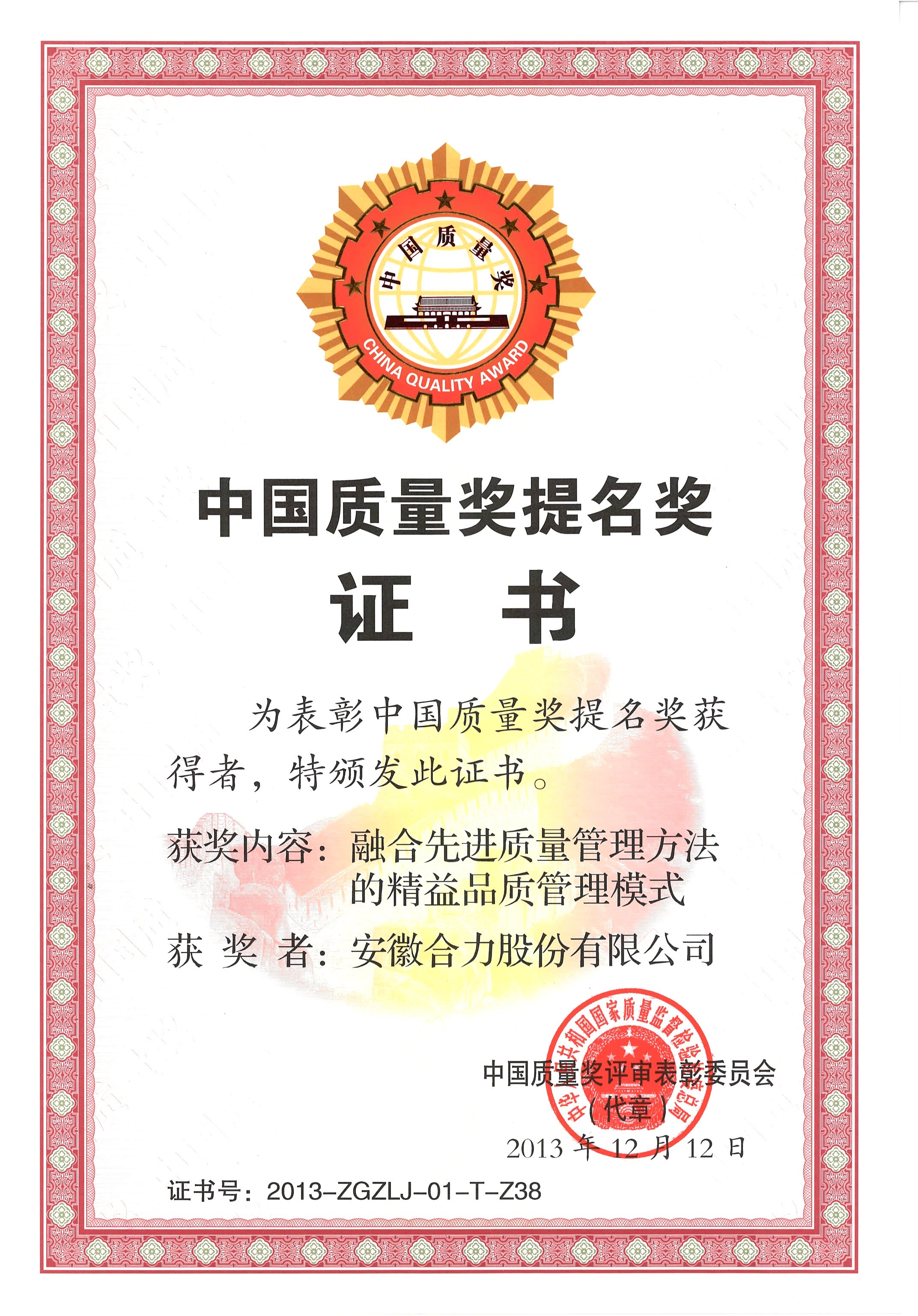2013 安徽省政府質量獎