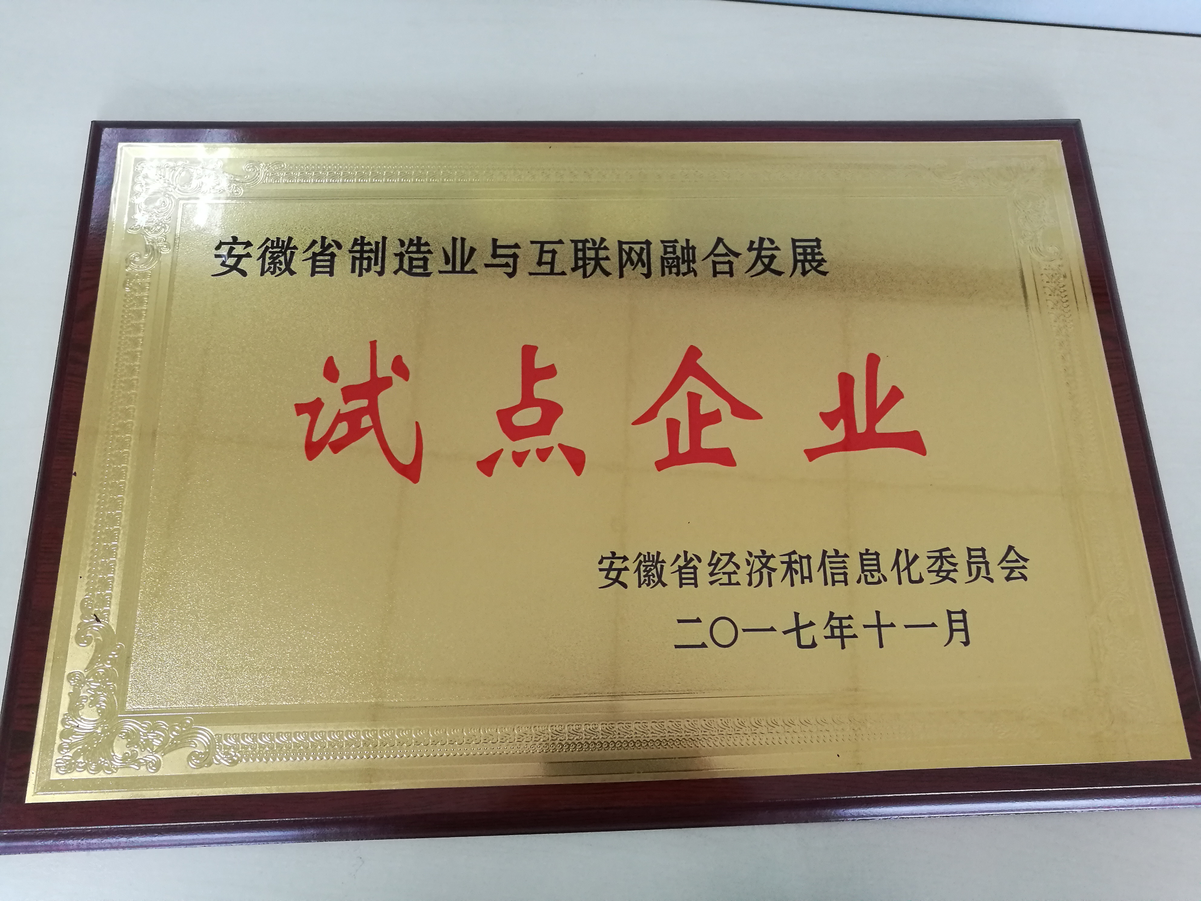 2017 安徽省制造業(yè)與互聯網融合發(fā)展試點企業(yè)